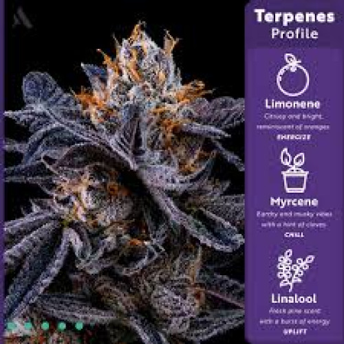 Blue Zushi is a slightly indica dominant hybrid strain (60% indica/40% sativa) created through crossing the delicious Zkittlez X Kush Mints strains. Known for its gorgeous appearance and pretty well balanced high, Blue Zushi is perfect for any indica lover. This bud has small and fluffy rounded forest green nugs with deep blue undertones, vivid orange hairs and a thick frosty coating of gorgeous tiny blue-tinted white crystal trichomes. As you pull apart each sparkling little nugget, aromas of spicy flowers and rich earthy pine are released, almost like walking through a forest after a rainstorm. The flavor is of sweet earth and spicy flowers with a mellow herbal tea-like taste that lingers on the tongue. The Blue Zushi high comes on with a slow sneaking creep, sneaking into you before launching you into a lifted and energized state. You'll feel a budding euphoria accompanied by a tingly buzzy body high that quickly makes your energy level u-turn into deep relaxation and ease. With these full-bodied effects and its high 13-20% average THC level, Blue Zushi is often chosen to treat conditions such as eye pressure or glaucoma, appetite loss or nausea, spasticity, chronic stress and chronic pain.